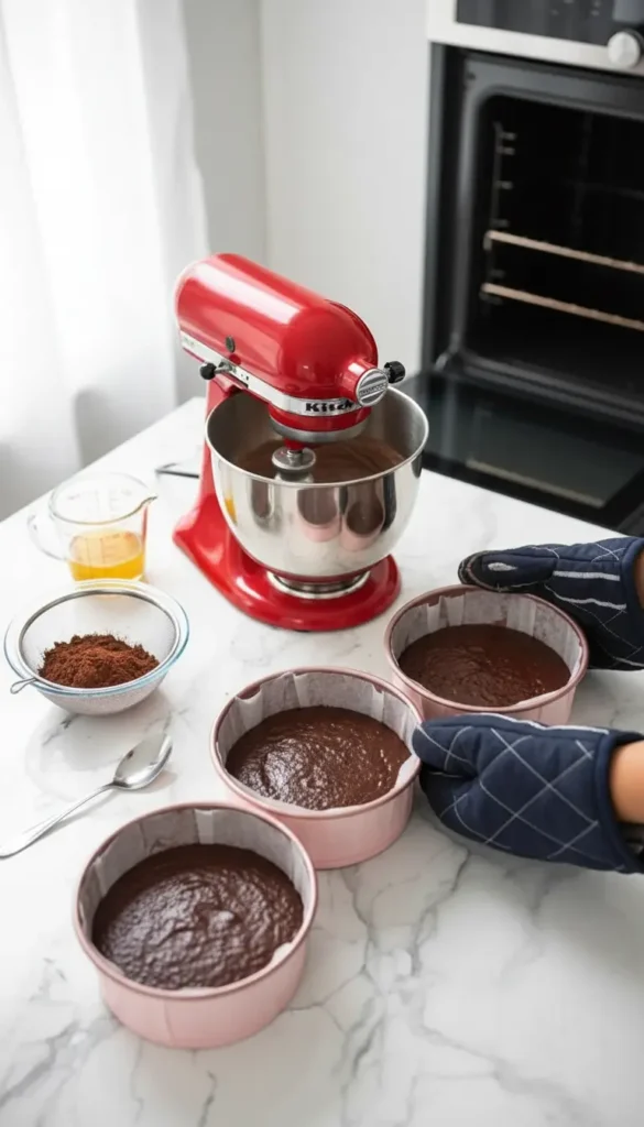 - Four et moules : Préchauffez le four à 180°C (160°C chaleur tournante). Beurrez 3 moules de 20 cm de diamètre et chemisez-les avec du papier cuisson.