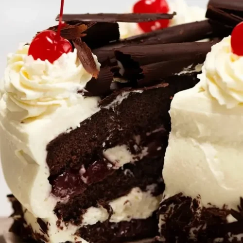 Ce foret noire gateau est sans doute le plus emblématique des desserts allemands : la célèbre Forêt-Noire ! Avec ses couches de génoise au chocolat, ses cerises gourmandes et sa crème légère, ce gâteau séduit par son équilibre parfait. Contrairement à certaines versions trop sucrées, ici chaque saveur ressort pleinement : le cacao, les fruits et la crème fouettée se dégustent harmonieusement sans excès de sucre. À nos chers lecteurs allemands : que pensez-vous de cette version de la traditionnelle ? Le foret noire gateau fait partie des grands classiques de la pâtisserie européenne, aux côtés de recettes tout aussi populaires comme le Spritz gateau.