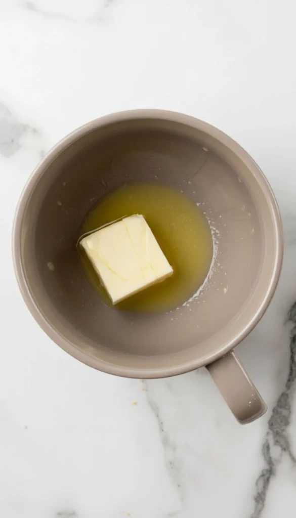 • Ajoutez le beurre dans la tasse et faites-le fondre au micro-ondes pendant 45 secondes.