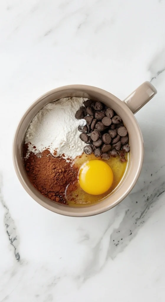 Pas besoin de batteur, ni de moule à gâteau, ni de salir la cuisine : juste une tasse, une cuillère et quelques minutes. Dès que l’envie de chocolat se fait sentir, ce gâteau vient toujours à la rescousse. Il est rapide, amusant à préparer et juste assez généreux pour satisfaire la gourmandise sans donner l’impression d’avoir mangé une énorme part de gâteau.