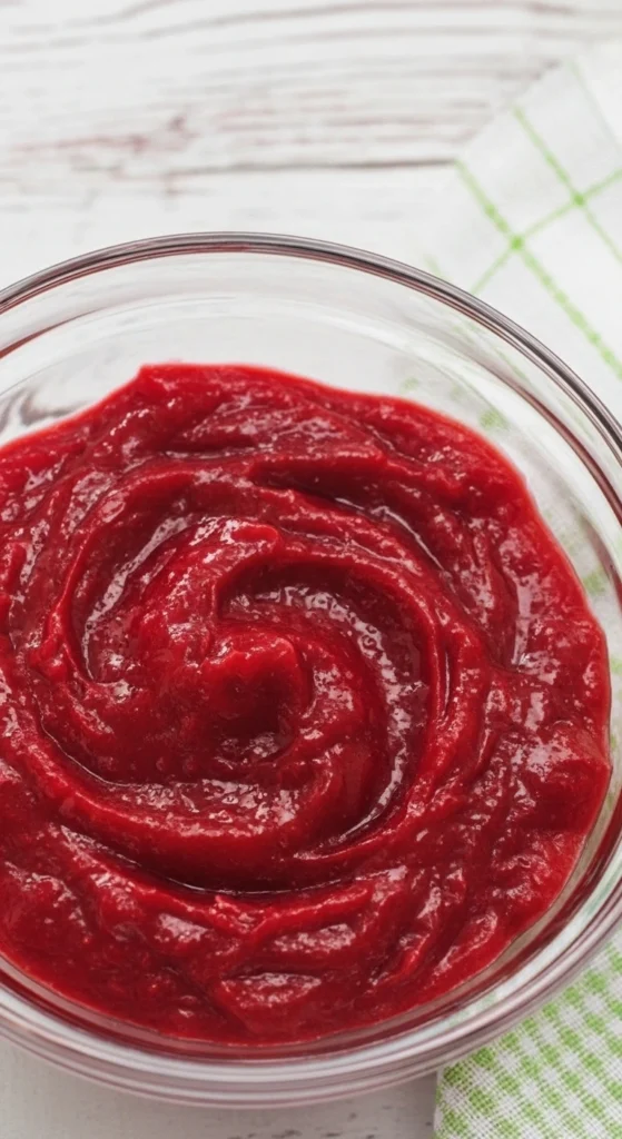• Ajoutez la purée filtrée dans une casserole avec 60 ml d’eau et 2 cuillères à soupe de sucre. Faites cuire à feu moyen-vif jusqu’à réduction à 180 g (¾ tasse). Cela prend environ 10 à 15 minutes. Si vous réduisez trop, ajoutez simplement un peu d’eau pour revenir à la bonne quantité.