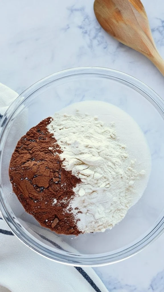 Cette recette est tellement simple que vous n’aurez plus jamais besoin d’un mélange à gâteau industriel. Il suffit de mesurer les ingrédients et de tout fouetter dans un seul bol jusqu’à obtenir une pâte homogène. Elle peut sembler assez liquide, mais c’est normal : le gâteau cuira parfaitement et chaque bouchée sera moelleuse et fondante en bouche. Explorez notre section Gâteaux au Chocolat pour découvrir toutes nos recettes faciles et gourmandes, y compris des versions rapides et décadentes comme ce gateau chocolat rapide.