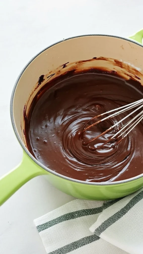 Pour réaliser ce glaçage au chocolat facile, vous n’avez besoin que d’un fouet et d’une casserole. Pas de robot nécessaire ! Faites simplement fondre le beurre, puis fouettez-le avec le cacao en poudre. Ajoutez ensuite le sucre glace, la vanille et le lait pour obtenir un glaçage lisse, riche et brillant. Étalez-le sur le gâteau encore tiède pour un résultat parfaitement fondant.